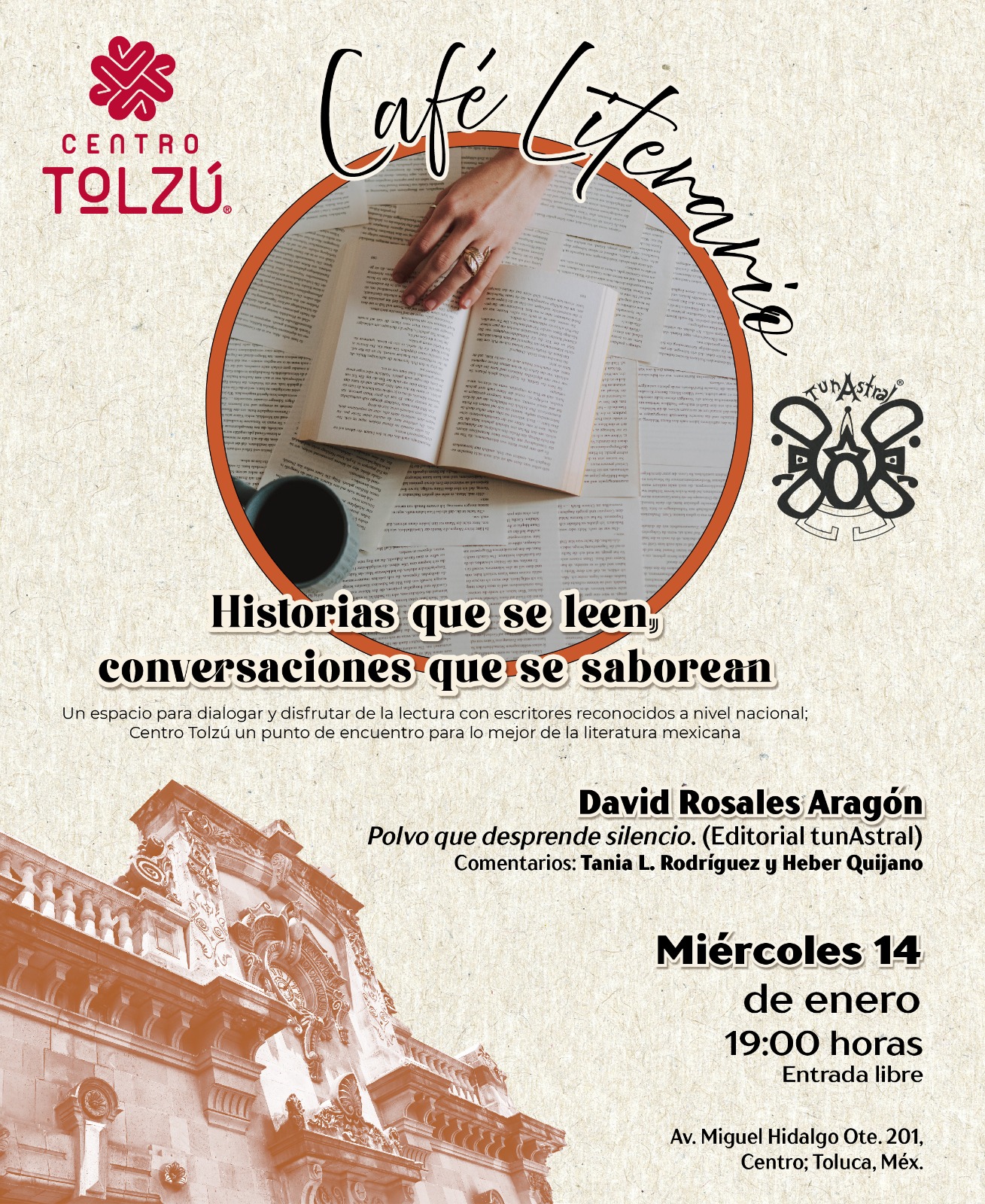 El 𝗖𝗮𝗳é 𝗟𝗶𝘁𝗲𝗿𝗮𝗿𝗶𝗼 de tunAstral A.C. llega a Centro Tolzú para reunir a autoras, autores y lectores en un espacio donde la literatura se conversa, se escucha y se vive cada segundo miércoles del mes